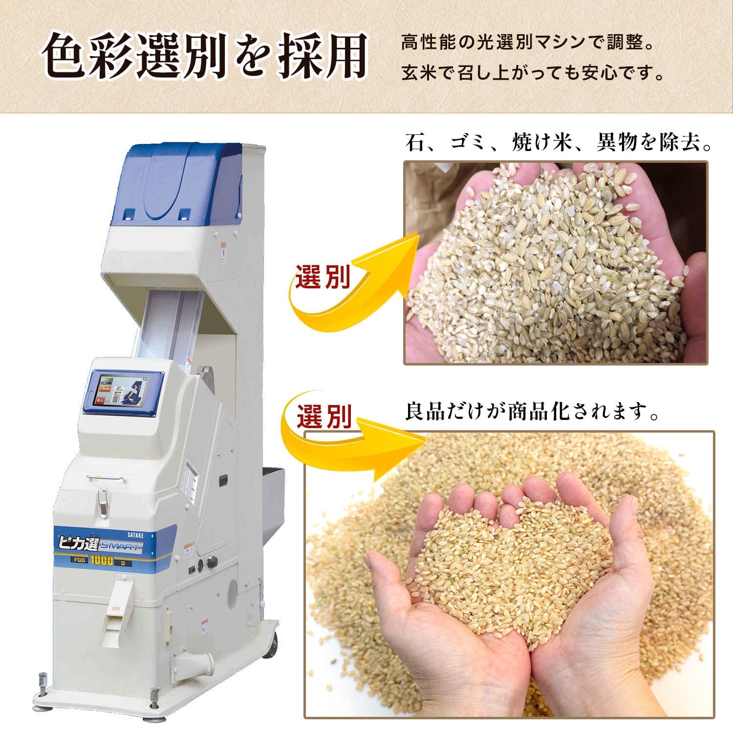 【色彩選別機】玄米の中から石抜き、焼け米・白田米・未熟米・その他異物などの選別を行う作業機です。機械が高額で手間もかかるため行わない生産者も多いですが、安全で安心なお米を届けたく、専門の業者に依頼しています!本来の美味しさをそのまま味わっていただきたい想いから、新鮮な状態ですぐに真空パックに脱酸素剤を入れ一つ一つ手作業で袋詰めを行い、新鮮な美味しさそのままでお届けします!