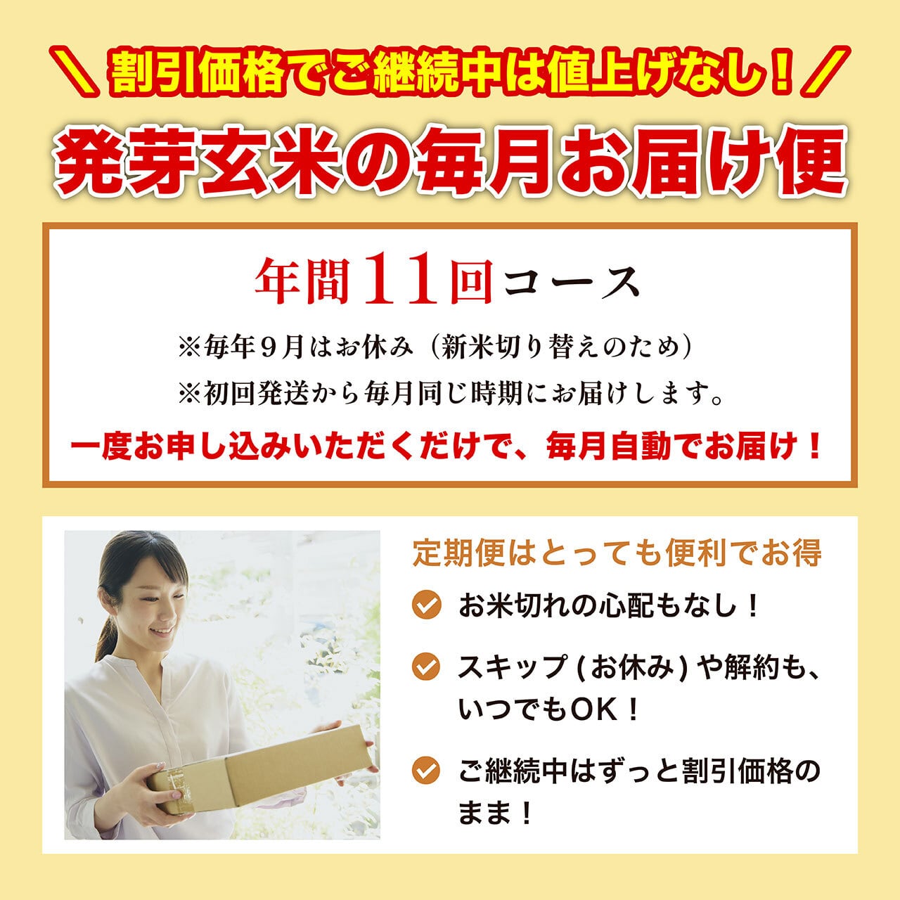 ※新米切り替えのため、9月は配送がお休みとなります。この1ヶ月間は支払いが発生しません。 (年間、11ヶ月間のお届けサービスです)