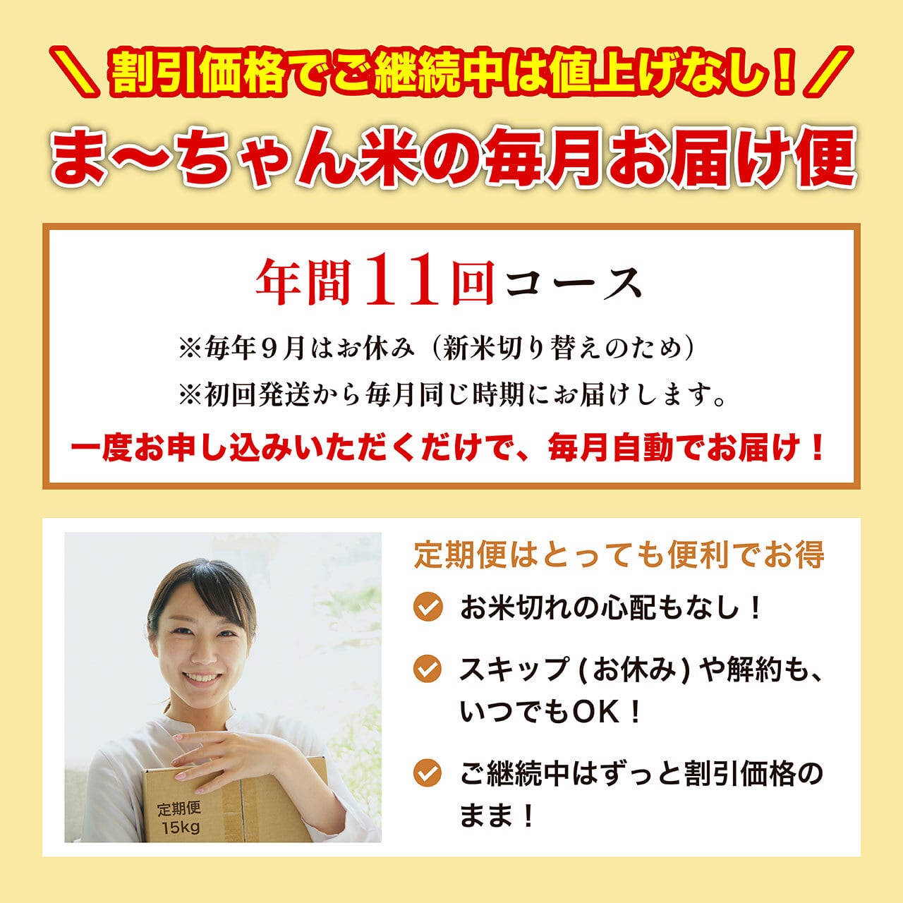 ※新米切り替えのため、9月は配送がお休みとなります。この1ヶ月間は支払いが発生しません。